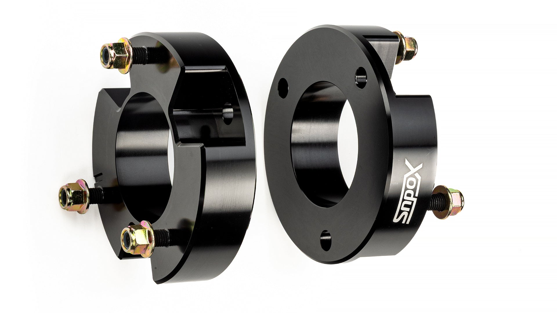 This leveling kit includes two black anodized aluminum lift pucks and high-strength, threaded studs and zinc nuts made to handle all the tough things that trucks do. This one’s an easy install. It can be used to level 13th and 14th gen F-150 trucks for a 2-inch lift. Pack accordingly.