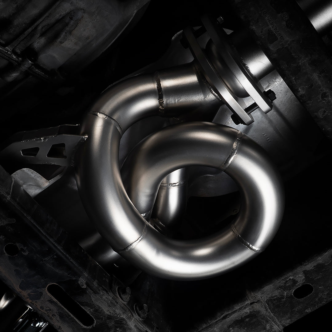 This equal-length pipe is made from premium stainless steel for durability and corrosion resistance. It was designed specifically for the F-150 platform, which wasn’t easy. It took engineering know-how and a contortionist mindset to create a custom loop pipe design that would work around the asymmetrical exhaust placement. In the end, having those two pipes meet up at the station from the same distance makes all the difference in the sound. Have a listen.